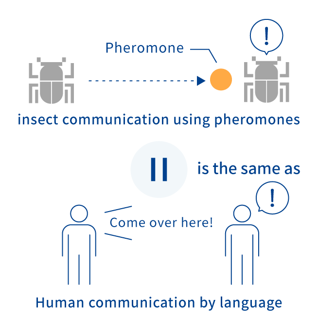 Insects communicate with their peers (same species) by releasing chemical substances called pheromones from their body.